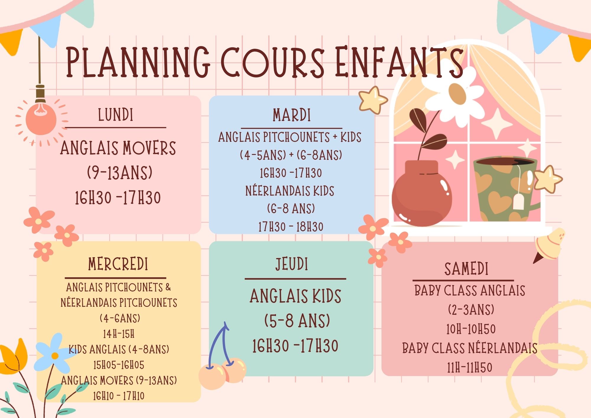 chansons, histoires, jeux, flashcards, memory games, vocabulaire et conversation en anglais et en néerlandais.